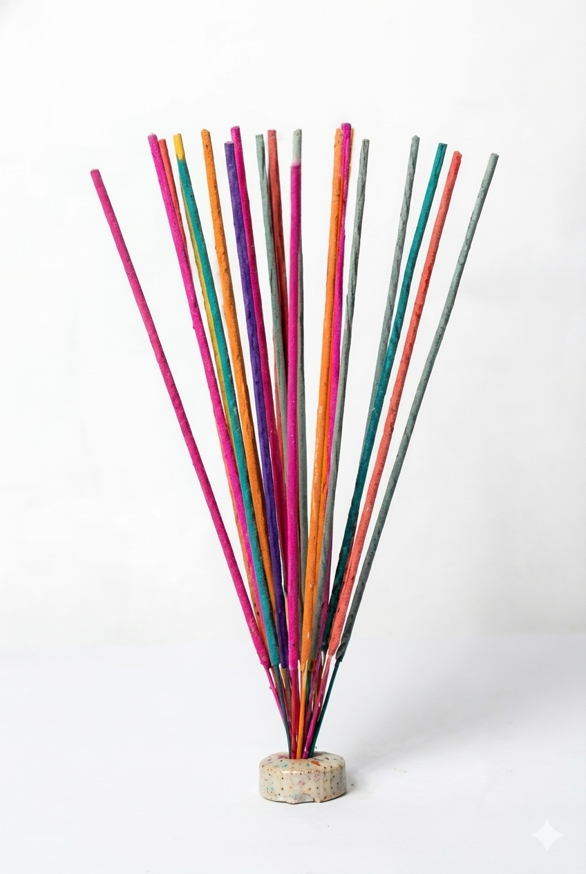 Colored raw incense sticks that add aesthetic appeal while serving as a perfect base for fragrance infusion.